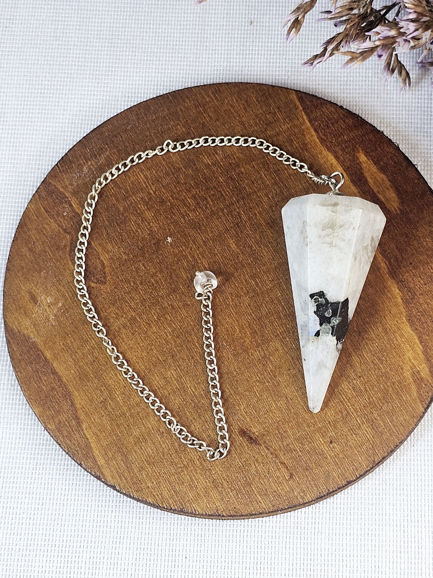 Este pêndulo pode ser utilizado para respostas energéticas, alinhamento de chakras ou simplesmente como um talismã de equilíbrio emocional. A energia serena da Moonstone faz dele uma excelente escolha para quem deseja trazer mais paz e clareza às suas práticas espirituais e ao seu dia a dia.